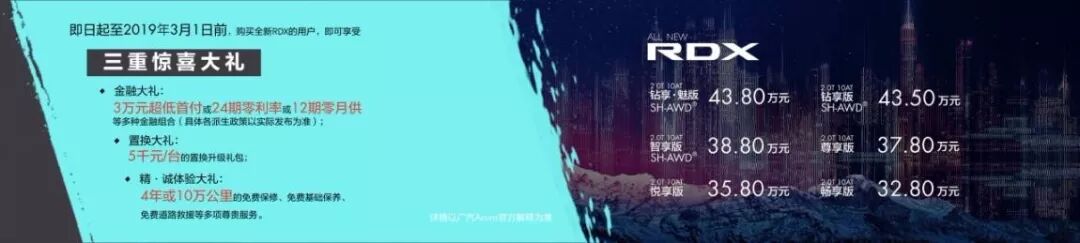 在动力操控上,ALL NEW RDX拥有超越同级的卓绝实力。开创全球先例的2.0T 直喷VTEC涡轮增压发动机和同级唯一10AT变速箱的动力组合,匹配Acura的独门秘技——同级最强的第四代SH-AWD®系统,带来极致驾驶体验。