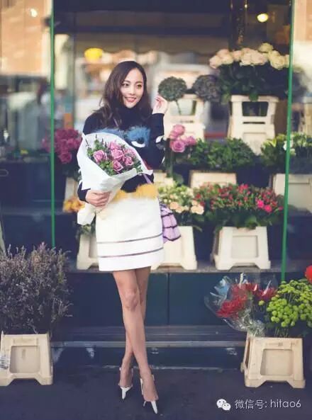 张嘉倪给人就是阳光开朗的个性,走到街上就是焦点的那种,她穿着的印花连衣裙,很简单随意,在她身上却能看到落落大方,很复古时尚的造型。