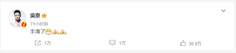1月25日下午,演员吴京被发现点赞了一条列举他的票房成绩和表示“只服吴京”的微博。随后,他取消了这个点赞,并在晚上发文笑称:“手滑了”加上大笑和抱拳表情。