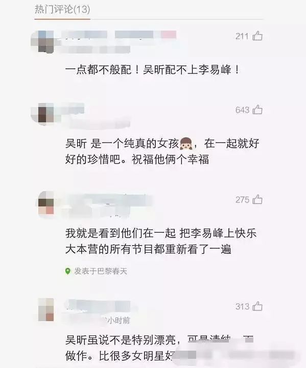 此前,就有网友发现两人微博上的端倪,吴昕发微博称胡思乱想,李易峰发文安慰。