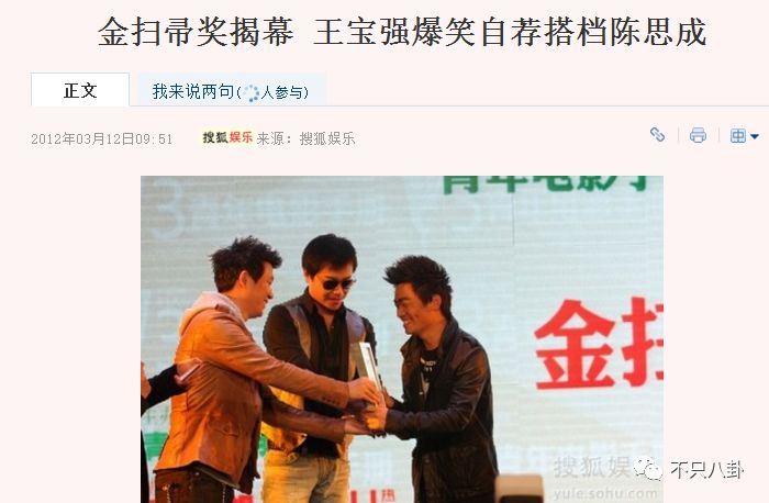 有趣的是,终于迎来一个领奖的明星,主办方很是惊喜,考虑到人家都拉下面子来了也得给点回报吧,就告诉王宝强你来领奖我们的宣传肯定就是全倾向你,但是王宝强却说他不为名也不为头条,只是为了尊重电影,回绝了。