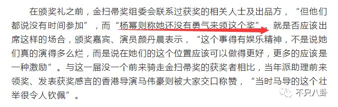 获奖这么多次,主办方自然多次联系杨幂参加颁奖典礼,但是杨幂说了大实话“还没有勇气来领奖”。