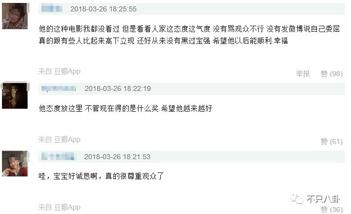 想必王宝强对这个情况多少有所了解,自己在家肯定也反省过。知乎上有网友爆料称,这个奖刚评出来的时候,金扫帚的创始人程青松就给王宝强发了微信,王宝强秒回,答应出席。