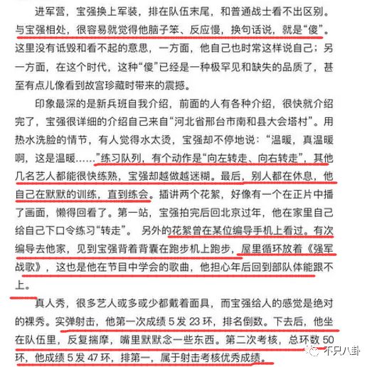 比如在炮兵营的那一期他因为记性不好,学习炮闩分解结合和擦拭保养时,教官说一遍零件名称后王宝强一个都没记住。