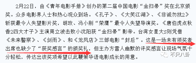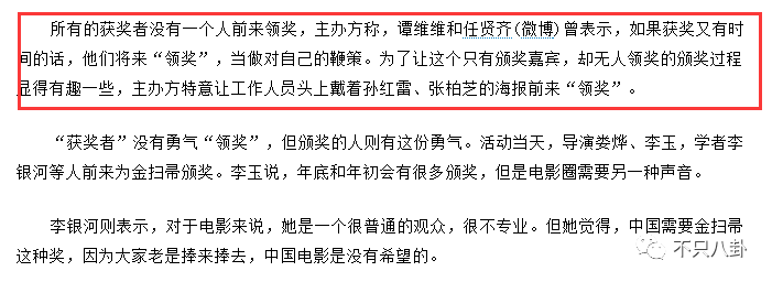 如果说当时金扫帚奖刚刚创立,还没有被明星重视起来,但是第二届好歹在圈子里有点名气了,可依旧没有人来。