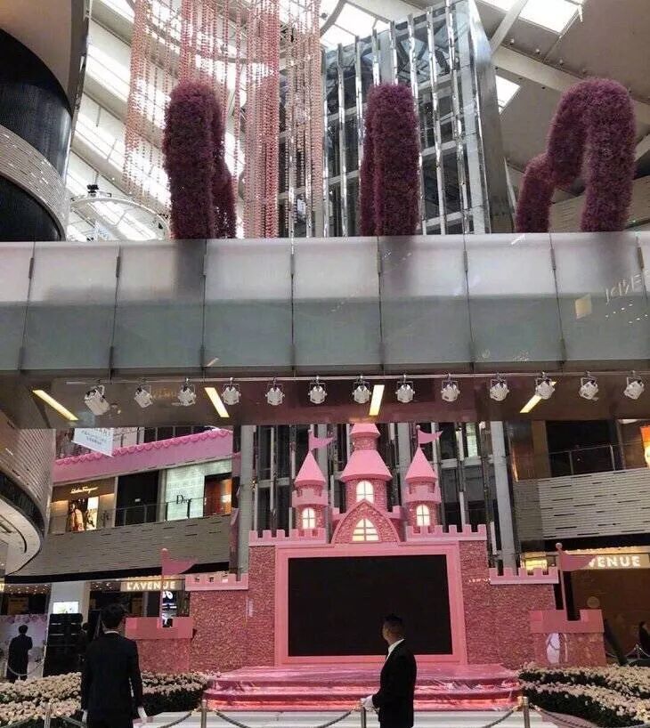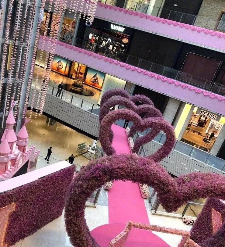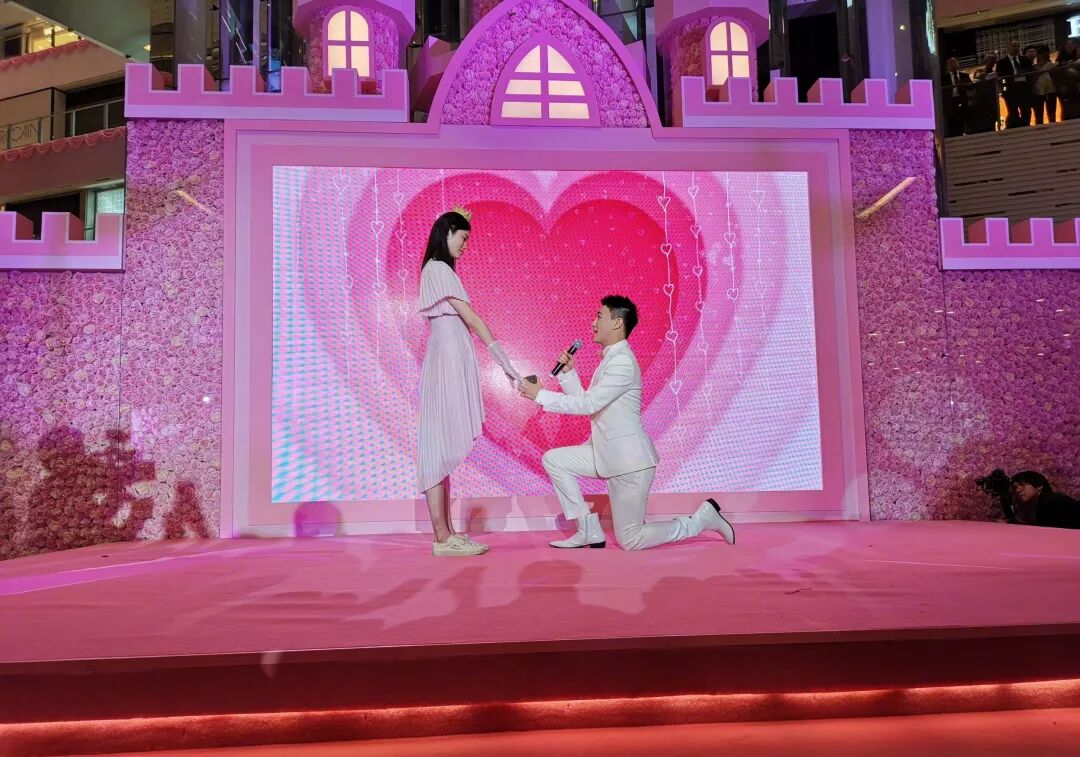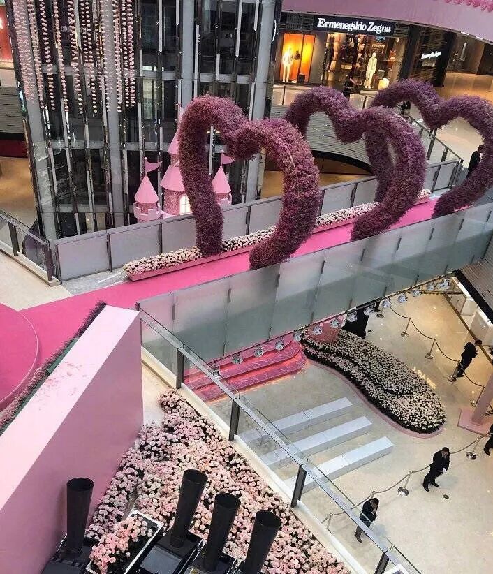 现场是在四太控股的商场里,为布置99999朵玫瑰清空了整整三层楼。