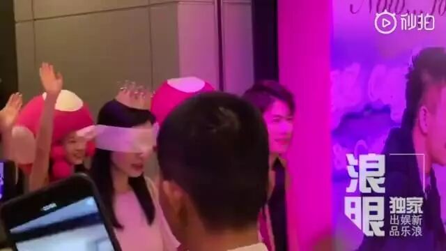 随后,奚梦瑶在几名戴着大头套的粉红舞伴陪伴下,走下电梯。这个伴舞的画风,emmmmmm……网友们说像在上演乡村爱情故事。