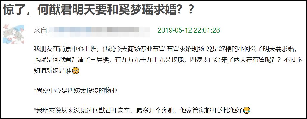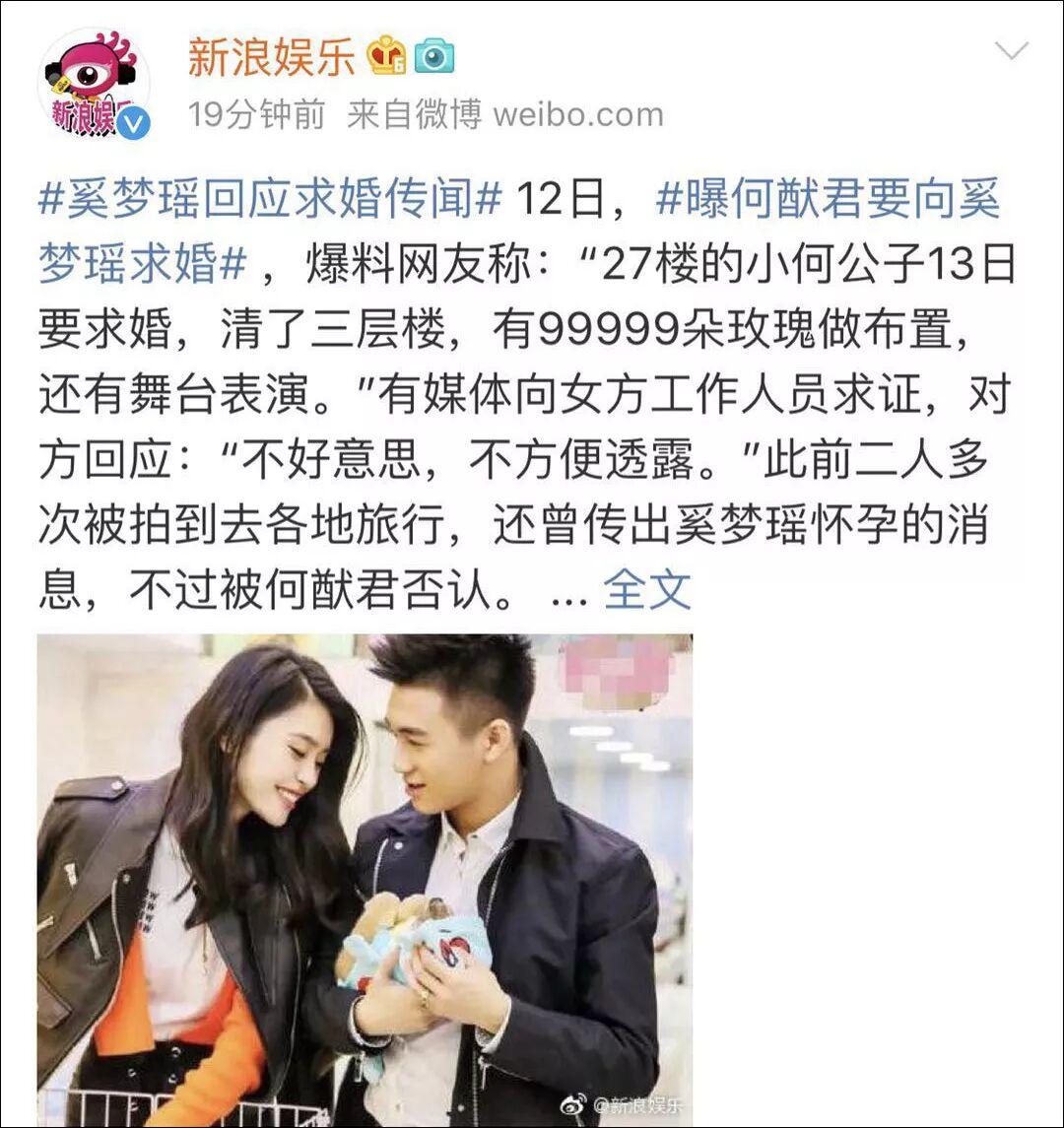 5月12日晚上,有网友爆料,何猷君准备了99999朵玫瑰要向奚梦瑶求婚。