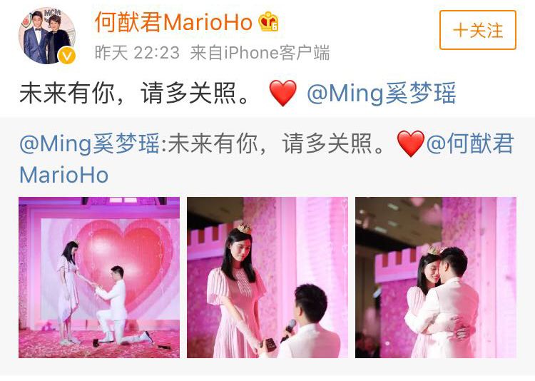 昨天(5月13日),24岁的何猷君承认向奚梦瑶求婚了!