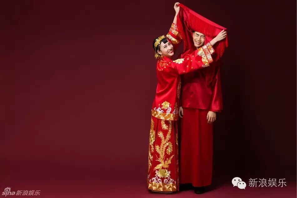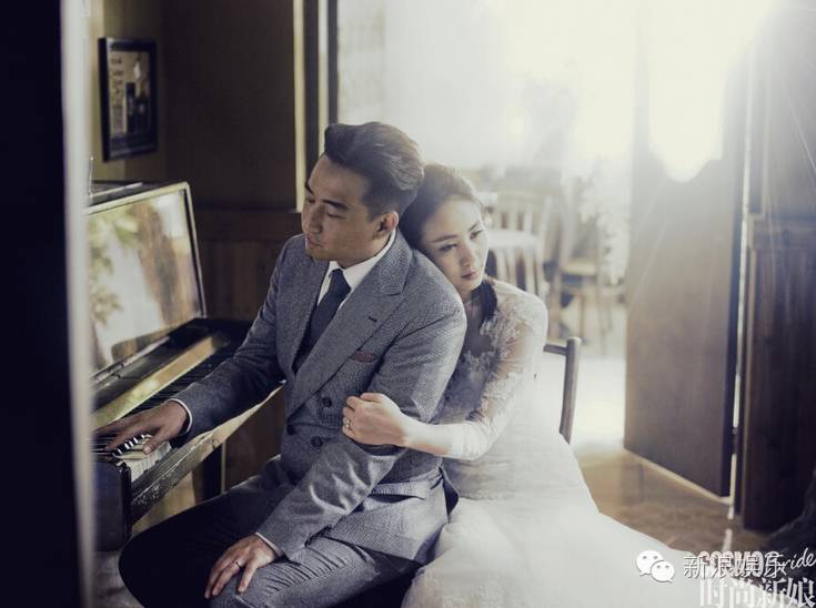 两人还有一组中式礼服的大片,除了照片的基调变了,走的还是简约路线。