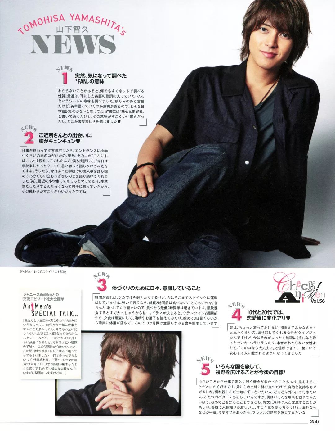 最近,有和生田斗真一起去喝喝小酒哟。从Jr.时期开始我们就经常一起工作,即便到了现在,如果彼此都不是特别忙的话,一个月会见面两三次吧。如果是日程安排得比较满的时期,有时会三个月都不见一次面,但是彼此心里都很理解!这种默契的关系真是让人感觉舒心啊。 还有,香取慎吾前辈也带我去喝酒啦!因为要商量事情所以我们见了面,工作完成之后就一起去吃饭了。因为一起出演电视剧的缘故,我感觉我和他之间的距离在以一个月一厘米的速度在缩短(笑)香取慎吾是一位伟大的前辈,所以我即便到现在见到他还是会感到紧张啊……
