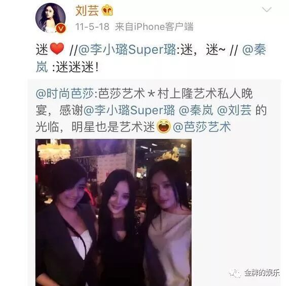其实按刘芸的那番话,即使和李小璐算不上是知己,起码好朋友这个称呼应该当之无愧的吧。7年前,刘芸还是个三线明星的时候,李小璐早就是一线大腕了。那个时候光蹭李小璐的人气,刘芸就不知道涨了多少粉丝。