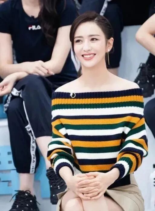 一字肩设计一直是凸显女性锁骨线条的绝佳选择,而佟丽娅选择的这款针织条纹毛衣,更是将温柔与性感完美结合。