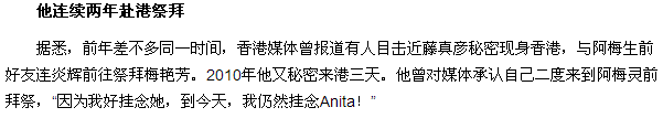 之后也多次祭拜梅艳芳,并公开表示此生最挂念的是梅艳芳。