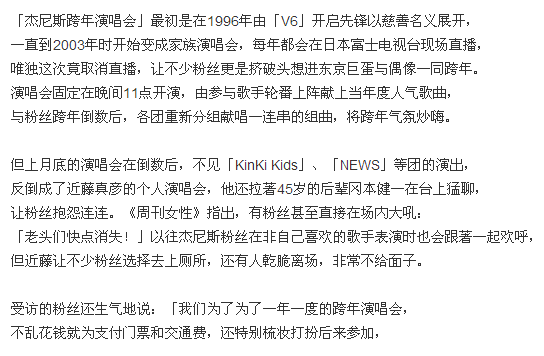 2014年是近藤真彦出道35周年,公司为了他,J家两派还合体共同庆祝近藤出道35周年,持续周期超出一年。但是渐渐地,他却仗着日本人极重辈分的传统,不断传出压榨后辈的新闻。最终引起后辈粉丝的不满。