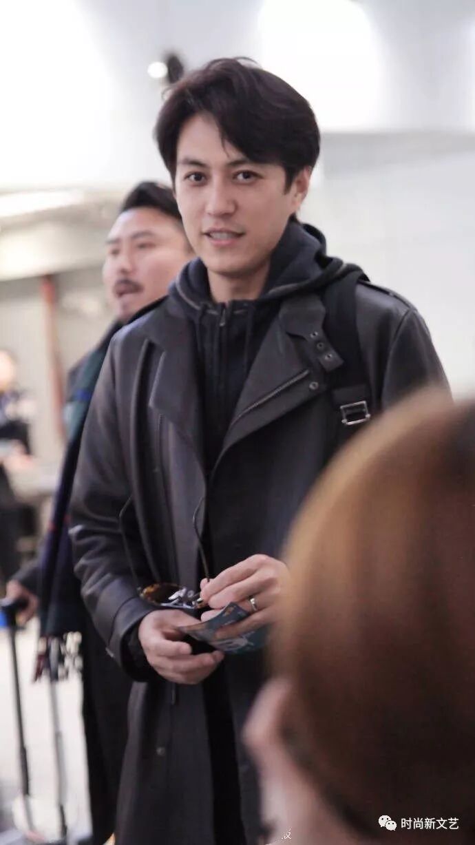 靳东虽比魏晨大十岁,气质形象却秒杀魏晨。一身黑色显得清爽干净,及膝盖长的皮衣外套,非常霸气,黑色长裤搭配干净的白色运动鞋显得非常精神。