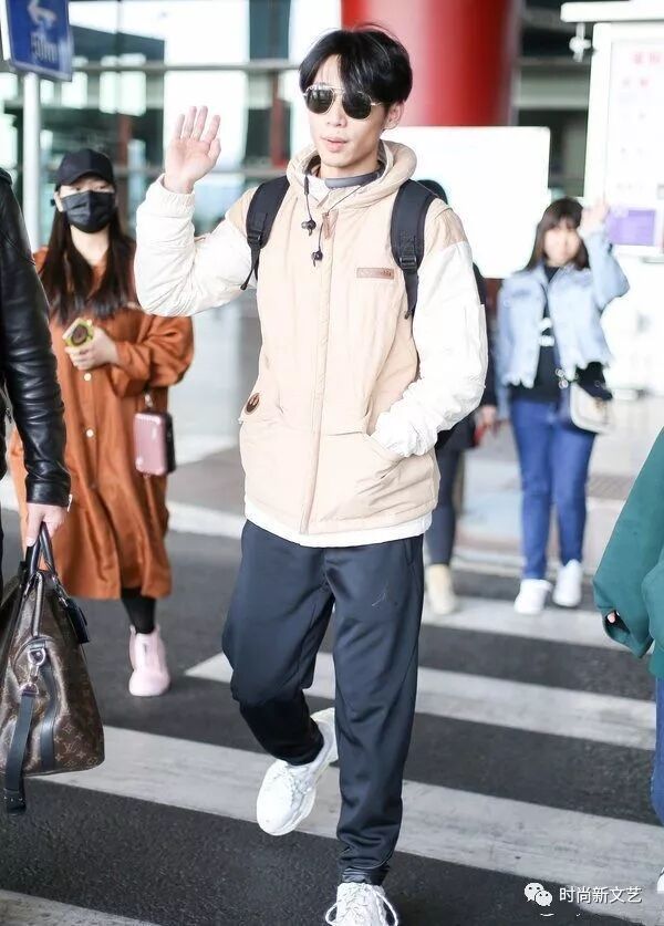 背着黑色的双肩包,双手插在口袋的样子一副乖巧boy的既视感。黑色墨镜挡住脸,头发稍显凌乱,脸上还有些胡渣。