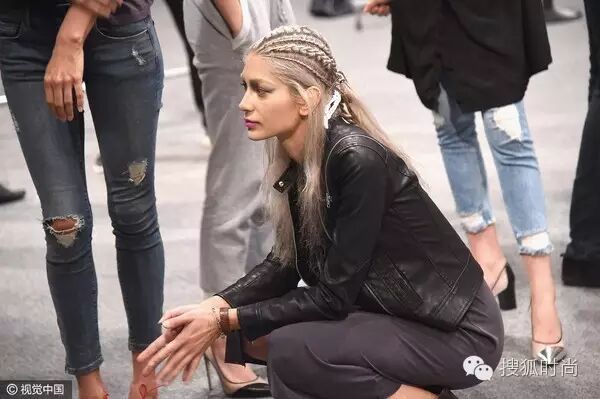 在纽约时装周后台,两位人气时尚icon选择的是今秋大热的“吃土色”妆容色彩:”浓密纤长的睫毛与大地色的眼影,唇妆自然也是选择低调奢华的裸色,再加上着装强调阴影修容,打造面部整体的立体感。