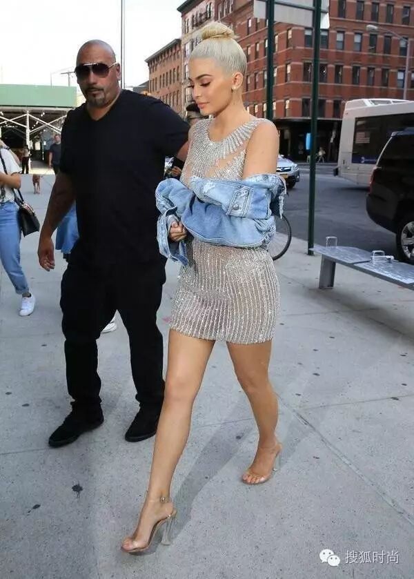 还有在纽约当地时间9月8号,穿着姐夫的Yeezy鞋子的美国超级网红,晋升为老板娘的kylie Jenner顶着丸子头,也带着标配的性感裸妆外出看秀。