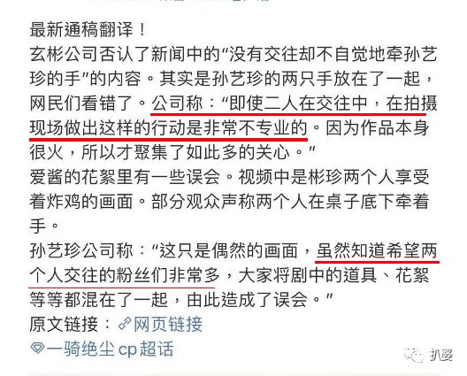 玄彬方说,拍戏时绝对没有私下牵手,就算真恋爱了也不会干这么不专业的事儿的。