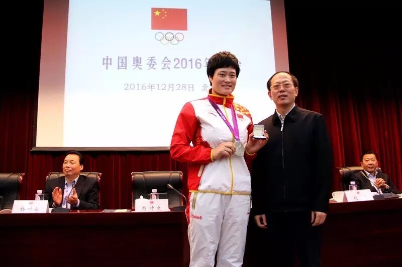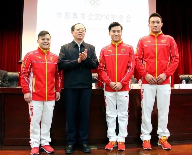 昨天的会上,苟仲文分别向里约奥运会奖牌运动员代表龙清泉(男子举重56公斤级冠军)、董栋(男子蹦床亚军)和程训钊(柔道男子90公斤级季军)颁发了国际奥委会授予的纪念徽章。
