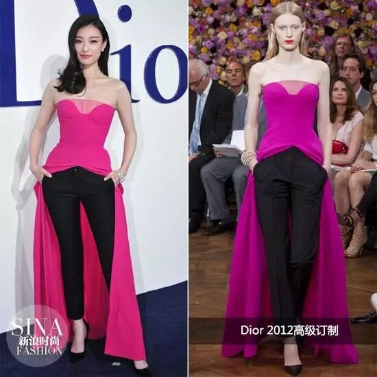 说到裙装与裤装的叠穿潮流,赶在范爷前头,还穿的更加美艳的,那绝对就是小花旦倪妮。穿衣风格一向是大气妩媚的倪妮,将Dior 2012高级订制系列的这款枚红色长裙与黑色修身裤装的搭配穿得比秀场模特更加有女人味。而这种叠穿的搭配,相比于单纯的选择裙装或者裤装,让整身造型更加有设计感。
