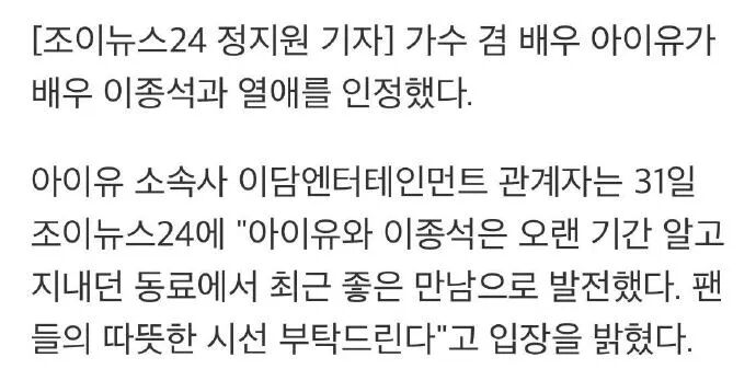 李钟硕IU均承认恋情-IU本人发文-iKON完整体签约新社-EXO回归-都暻秀-JISOO solo 韩国me2day 日韩男星 2023-01-01 16:28:01 1372 创作不易,用心坚持,欢迎请BaGua喝几杯爱心咖啡!打赏并支持本文 打赏并删除本文 李钟硕所属社“最近和IU发展成为恋人,真挚交往中”31日李钟硕的所属社通过官方渠道表示“李钟硕演员和IU最近从亲近的同事关系发展为恋人关系,正在真挚交往中。为了继续甜蜜的爱情希望得到大家更多的应援”。IU所属社“最近与李钟硕发展成恋人,请给予温暖的视线”(左右滑动可查看更多)31日IU所属社方面表示“IU和李钟硕最近从多年来相识的同事发展为更好的缘分,希望得到粉丝们温暖的视线”。 1日凌晨,IU通过官咖上传了题为“新年问候”的长文以下为全文:你们好啊U-ana..!现在是大家都在睡觉的时间吗?2022年的收尾大家都是怎么过的呢,一年的最后一天会不会因为我多少会有些心乱呢,今天想给U-ana带来新年问候的同时表达感激之情以及歉意。看到今天新闻的人们应该知道我谈恋爱了。一直为我担心,挂念我是否平安的U-ana可能会为此吓一跳,我也很谨慎,不过...事情就是这样的。我和多年来是同事的那位相互依靠,培育着很好的感情。他也是长期以来为我应援,一直对我说“帅气真帅气”的,真心激励我的稳重又可爱的值得感谢的一个人。一直以来关心我的U-ana们,应该能感觉到最近的我过着情绪平稳和愉快的时期。同时还唯独对事业充满自信和热情的原因之一就是身边有了一直夸赞我的好朋友了。既然都知道了,为了不让粉丝们担心,我们会安静、漂亮的去交往...!!很抱歉让大家吓一跳,同时也向即使在这种情况下也首先祝贺我,关心我的U-ana表达歉意和感谢。可能因为是每一段话都是思考了很久写的,内容不长现在却已经进入了新年了。2022年开始写的内容,都写到2023年了。各位新年一定要多福。已经成为去年的2022年,我们时隔许久得以见面,可以幸福的近距离见面,那些心动瞬间回想起来也一直难忘。一年以来一直和我一起享受快乐,和我过得最亲近,所以想真心感谢你们!!今年也不会偷懒,奔跑下去!一定会做好。再一次祝大家新年快乐U-ana,睡个好觉起来就是新年了,晚安,爱你们EXO 2023年回归来袭!iKON完整体和143 Ent.签订专属合约,4月回归据韩媒报道iKON全员与143 Ent.签订专属合约,将继续组合的完整体活动,组合将于4月份回归歌谣界。此外,YG Ent.和143 Ent.出于大局出发经过协商达成协议,iKON组合名将继续使用。[KBS演技大赏]男子最优秀演技奖:都暻秀(左右滑动可查看更多)“Please wait for Jisoo's solo album in 2023”感性和Sense都炸裂的NewJeans DANIELLE & HAERIN自拍照Hanteo专辑2022年销售指数Top1024小时栏目内容来自:米兔官方微博@米兔的韩流生活 。关注查看更多实时新闻! 创作不易,用心坚持,欢迎请BaGua喝几杯爱心咖啡!打赏并支持本文 打赏并删除本文 感谢您的支持鼓励,我会继续努力的!文章地址:用户邮箱:打赏金额:USDT 请输入数字点击”去打赏“,即可进行打赏支持本文章哦 iKON About the Author 韩国me2day 功能介绍:新浪微博@韩国me2day专属帐号,合作联系:[email protected] Related Posts 这对明星夫妇结婚六年恩爱如初还有这样的秘诀... 2023-06-05 17:00:49 李钟硕&李宝英合影-吴世勋新剧海报-郑号锡入伍-(G)I-DLE、ONEUS 5月回归-韩素希ins图-安宥真&李泳知-泰民 2023-04-13 20:10:56 李钟硕IU均承认恋情-IU本人发文-iKON完整体签约新社-EXO回归-都暻秀-JISOO solo 2023-01-01 16:28:01 朴信惠复出-KBS歌谣大祝祭-SMTOWN-WayV-Haerin-秀彬-珉豪-金秋天-Somi-罗英锡 2022-11-30 17:12:59 曾经的韩流男星已经两年没拍戏,可他一家五口过得超幸福... 2022-11-22 18:06:57 发表评论