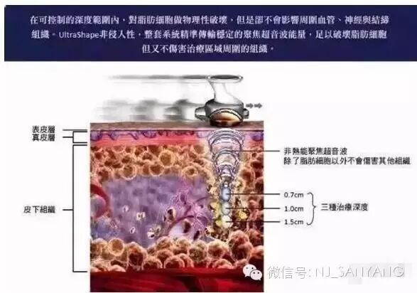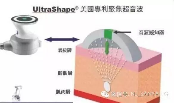 UltraShape V3 优立塑,是以聚焦超声波方式,针对皮下0.7--1.0--1.5公分,三个不同深度脂肪层,直接将脂肪细胞震碎。由於采用脉冲式的非热能机械波形,在溶脂过程中,表皮与组织温度不会增加,不致发生烫伤意外,也不影响周围血管、神经与结缔组织,是经过科学与临床研究,能以非侵入的方式破坏脂肪细胞的体雕技术。