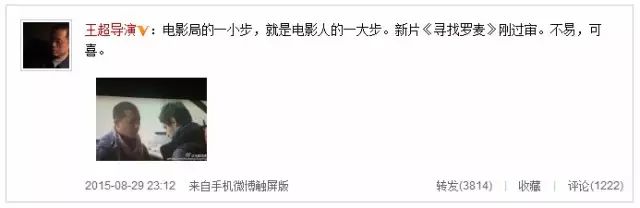 8月29日晚,王超导演发微博称“电影局的一小步,就是电影人的一大步。新片《寻找罗麦》刚过审。不易,可喜。”并附上电影中韩庚剧照。之后韩庚发微博“寻找罗麦,久别重逢”,而韩庚工作室更在微博转发回应“大约在冬季”,暗示影片有望在年底上映。