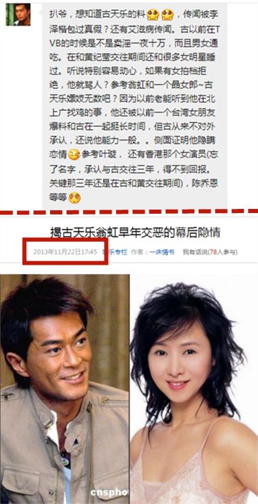 “古天乐追翁虹不成结果破口大骂,还叫嚣着要封杀翁虹”这件事,当年确实闹得沸沸扬扬的。但这个新闻其实有不少疑点:比如,消息真正被内地网友关注的时期,其实有两个关键的时间点。第一次刚好是翁虹来内地拍了山争哥哥那部成名作“猪八戒”的“猫妖”的时候,也就是翁虹正好想要转战内地的时期;而第二次又“旧事重提”地大规模爆出这件事的时候,正是12年前后、翁虹靠结婚生子“洗白”的阶段。之所以要用“洗白”这个词,也是因为翁虹早年也是“下过海”拍过“大电影”的女明星之一嘛,那时候内地对于她这样的艺人其实还是有一些偏见的,即使是结婚生子也未必能被观众买单(哪像现在这样啊,随随便便地谁都能通过结婚、“嫁给爱情”就洗白成功啊),所以当然要营销一些“可怜”的新闻来博取舆论的同情咯。