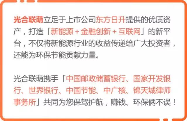 安装电站一定要选择品质有保障的品牌,至少25年的寿命才能保证更多的收益,选择东方日升准没错。当然前提是拥有一个自家的屋顶才能装电站。那家里没有屋顶不能装电站?也不怕,选择光合联萌,不用忙碌就能投资电站,圆你一个电站梦!