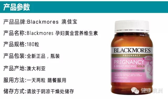 产品名 | Blackmores 澳佳宝 黄金孕妇综合维生素孕期/哺乳期 180粒 |