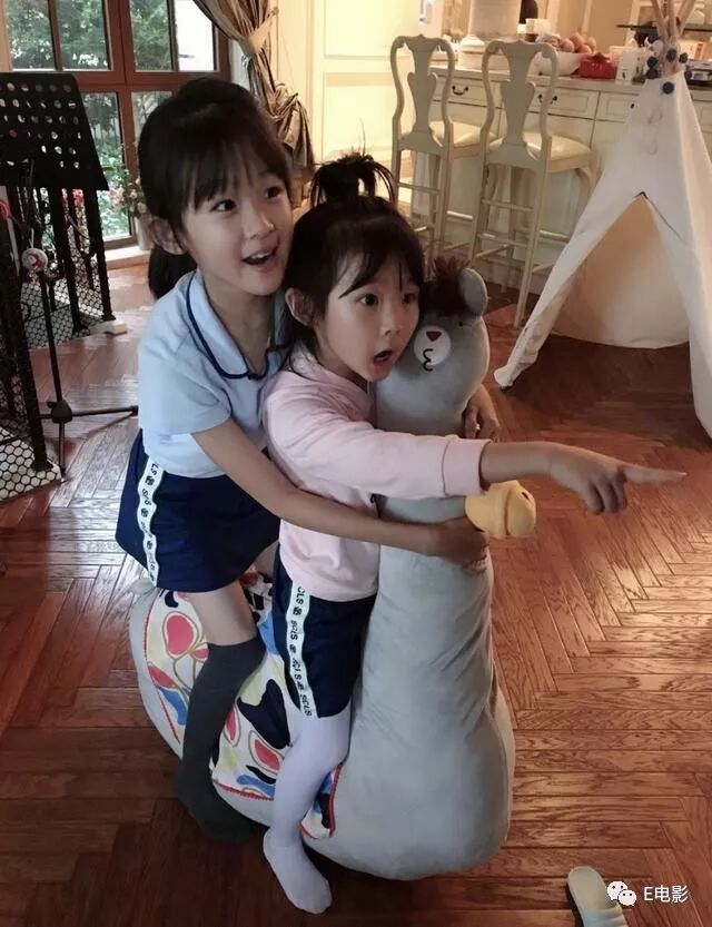 姐妹俩坐在玩偶身上相亲相爱。贝儿长大以后眼睛越来越大,凭这颜值完全可以当校花了。别看妹妹小叶子还小,其实也已经上小学二年级,这摆拍的表情看起来相当职业哦!