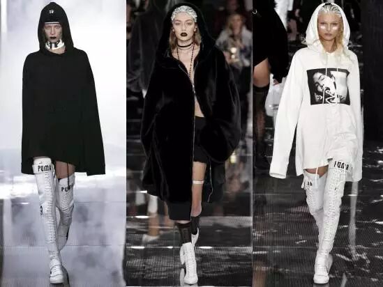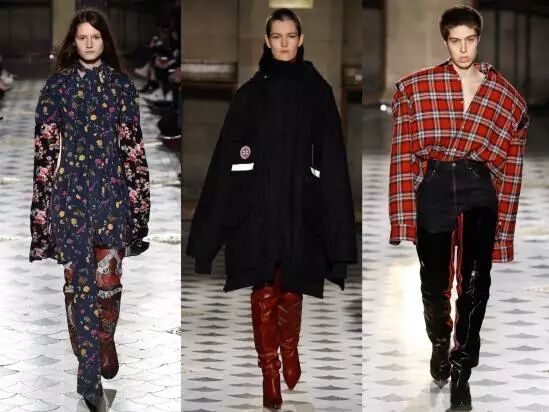 除了对时髦态度的刻画之外,Demna Gvasalia对整个时尚圈的设计师也产生了潜移默化的影响。纵观整个16年秋冬时装周,你会发现很多品牌都推出了超长袖时装,而天桥上模特儿的穿搭也是以One Piece超长袖搭配过膝长筒靴,威风凛凛,霸气十足!超长袖卫衣、超宽袖衬衫,或是如裙摆般骤然撑开的长袖针织衫……设计师们在袖子上大开脑洞,设计出许多毫不实穿的服饰单品,以配合时尚爱好者的“装X”需求,或许正是这个躁动时代的细微表达吧!小编目测以后会涌现越来越多诸如超长袖的设计,但这种比例失衡的设计更考验大家的搭配功力,在失衡中找到平衡才是重点!