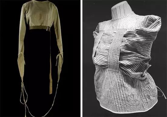 当然呢,在Martin Margiela、Demna Gvasalia、Rei Kawakubo、Raf Simons等人的作品中,那些可以拖地的超长袖、布满皮革绑带的设计在如今看来可能是与色情和次文化勾结下的杰作。但实际上,他们的原型都来自Straitjacket——一种用以捆绑具有攻击性精神病患者的特殊道具!