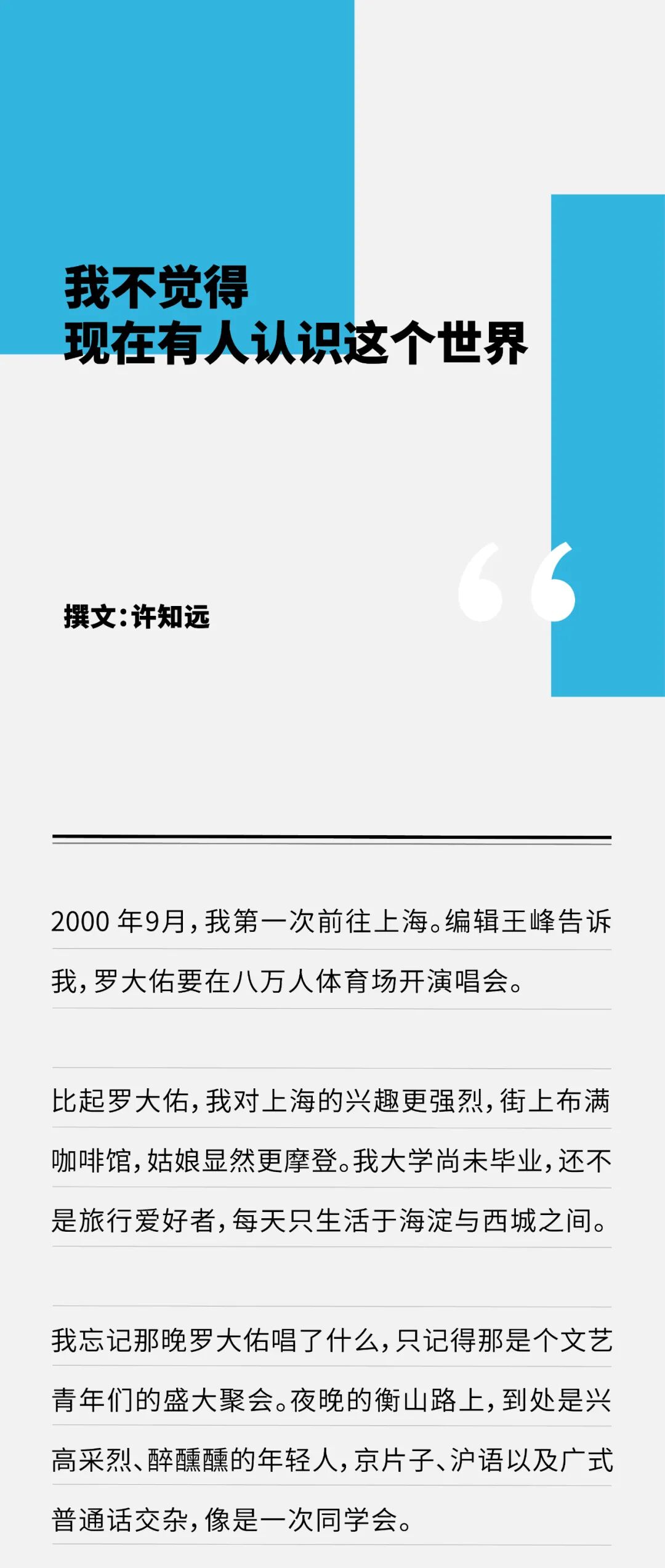 罗大佑:我这个人有时候想得多一点,忧国忧民之类的。世界真的在产生巨大的改变,我们从宗教世界十字军东征的这种仇恨的报复行为开始,到整个世界因为产能过剩,全球化造成的好处跟坏处,再到英国的脱欧、特朗普的当选,整个世界跟我们那个时候想象的世界已经完全不一样了。我不觉得现在有人认识这个世界。