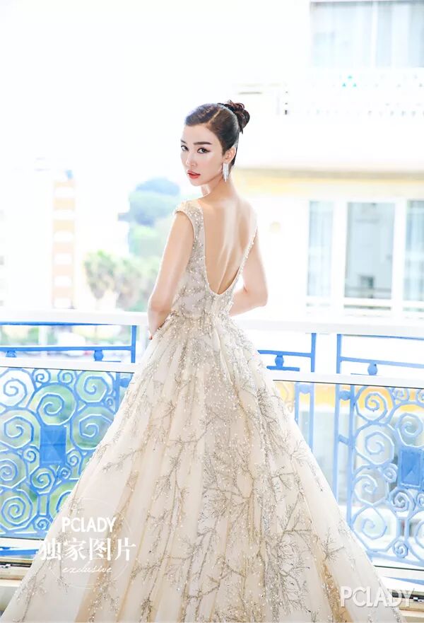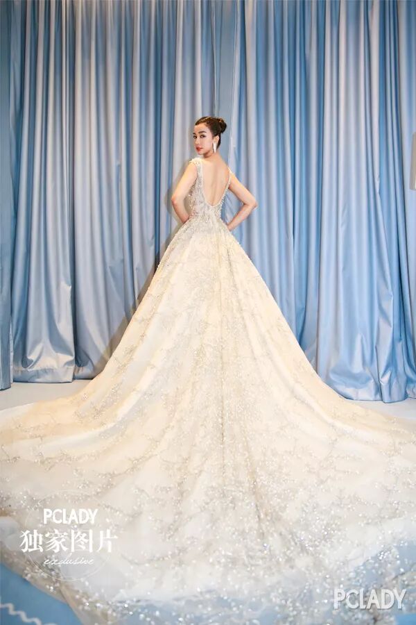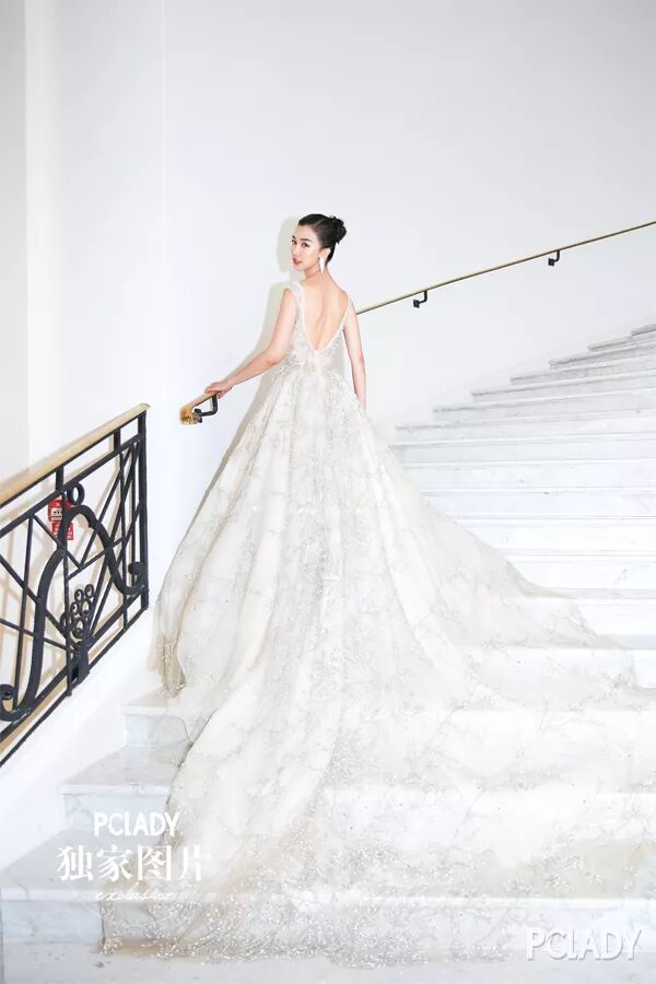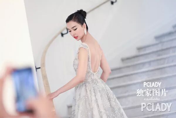 缓缓走上台阶,裙摆从台阶上迤逦延伸下来,精致的华服勾勒出肩部和背部的迷人线条,曼妙的身姿和清晰的蝴蝶骨将性感显露无疑,举手投足间高贵而端庄,优雅而大方。