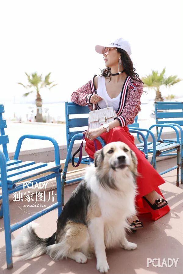 一个人、一只狗,一片天空,漫步海边街道。没有红毯厮杀,只有一份闲适和一场与浪漫之都的风情约会。戴上chocker,露出性感天鹅颈,亮片外套和亮眼红裙,张扬时尚活力。