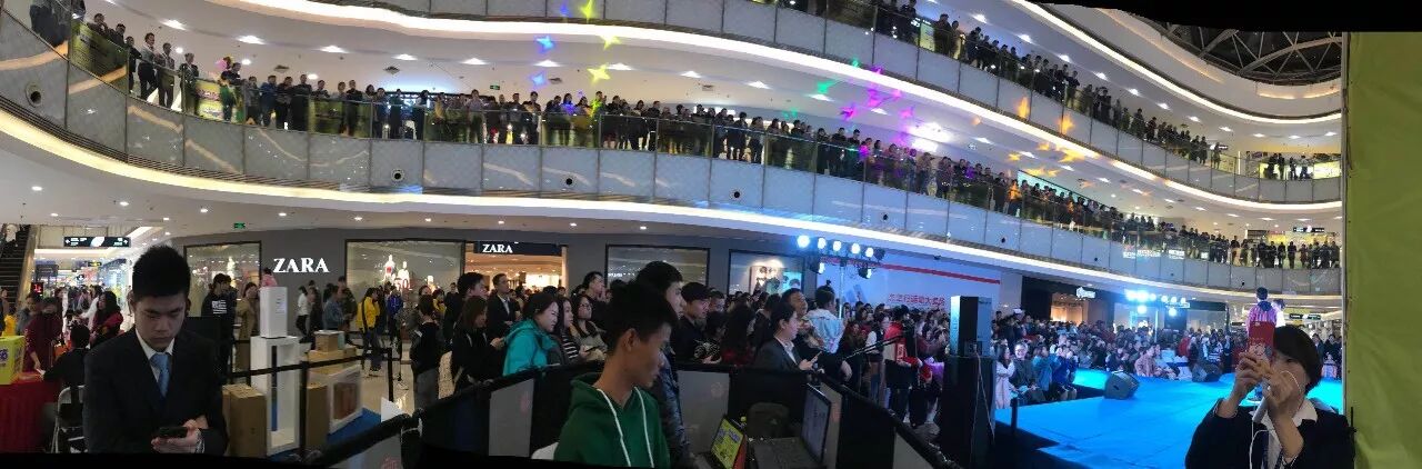 活动还未开始现场已经被围得水泄不通,声音组合、张梦羽一出场,迷妹们的尖叫盖过了双十一的购物热情。