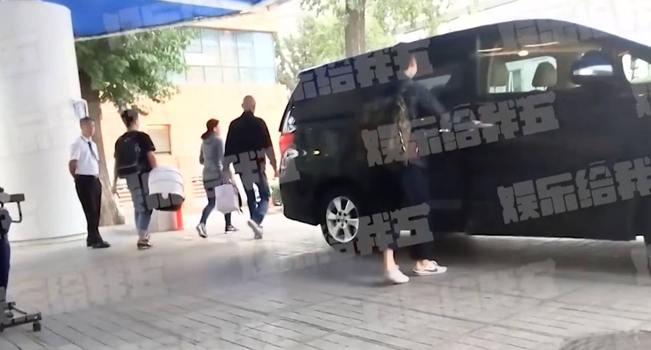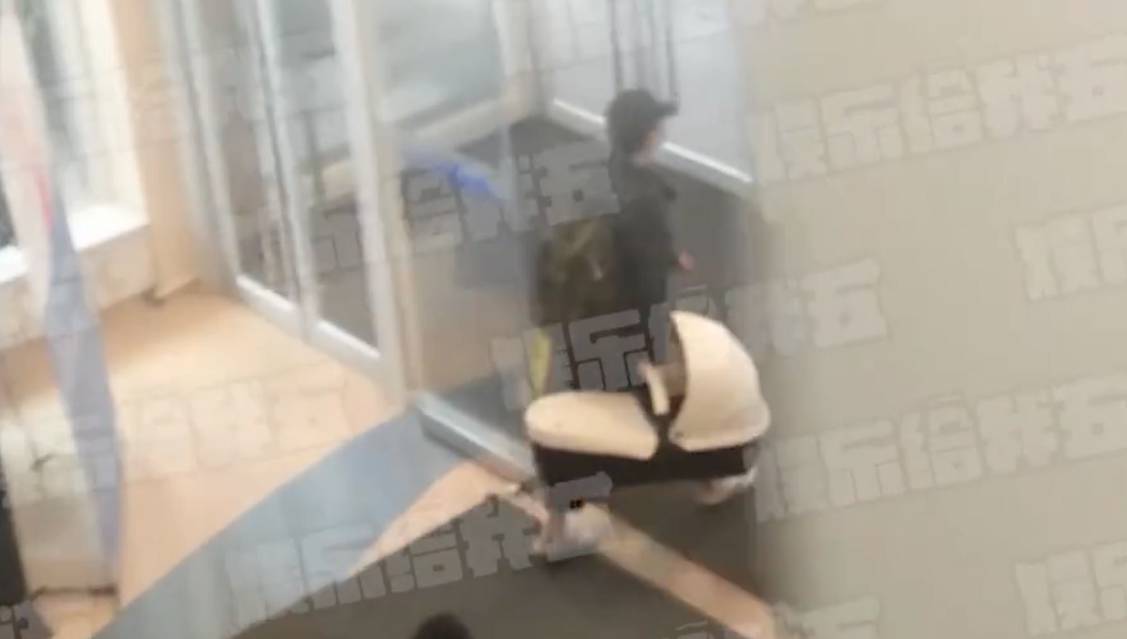 董子健提着婴儿篮和捂得严严实实的孙怡