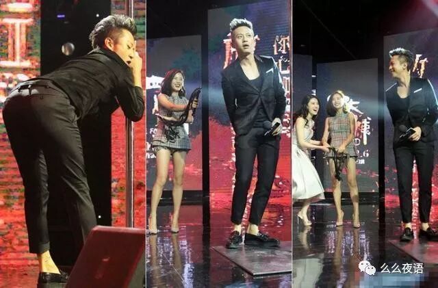 邓超在一次发布会上大秀钢管舞,哪知道用力过猛,裤子的线条被崩开,不想说邓超的动作有点像失禁了(偷笑中),而身后的刘亦菲、江一燕控制不住大笑,可怜了我的超哥~