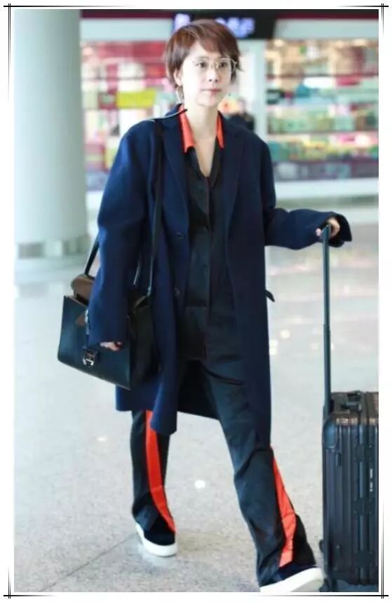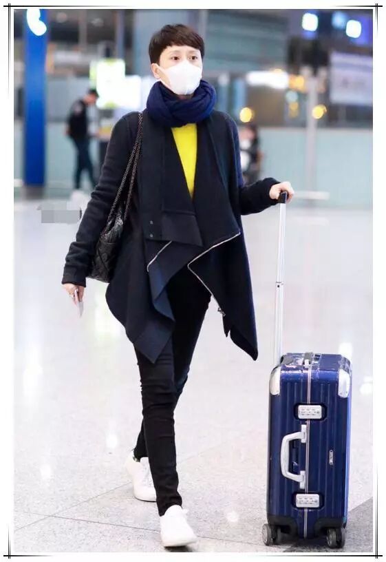 海清的另一只手还提了一个黑色的行李箱,拉行李箱也这么优雅也是没谁了,海清的皮肤也是好到惊人,白皙光滑,看上去没有一点瑕疵,真是让人羡慕。