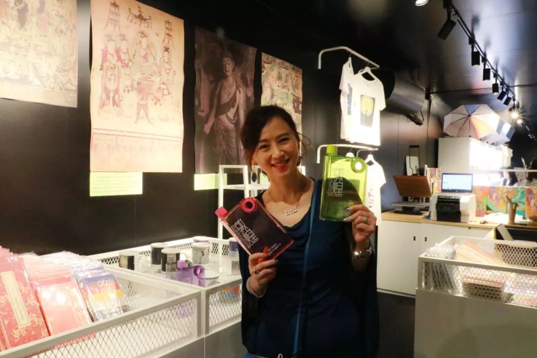 观展后,深受文化震撼的翁虹对敦煌艺术衍生品爱不释手,细心挑选,希望将这座文化艺术馆带回家。在神秘敦煌衍生品处可以购买女神同款丝巾,笔和水壶哦!