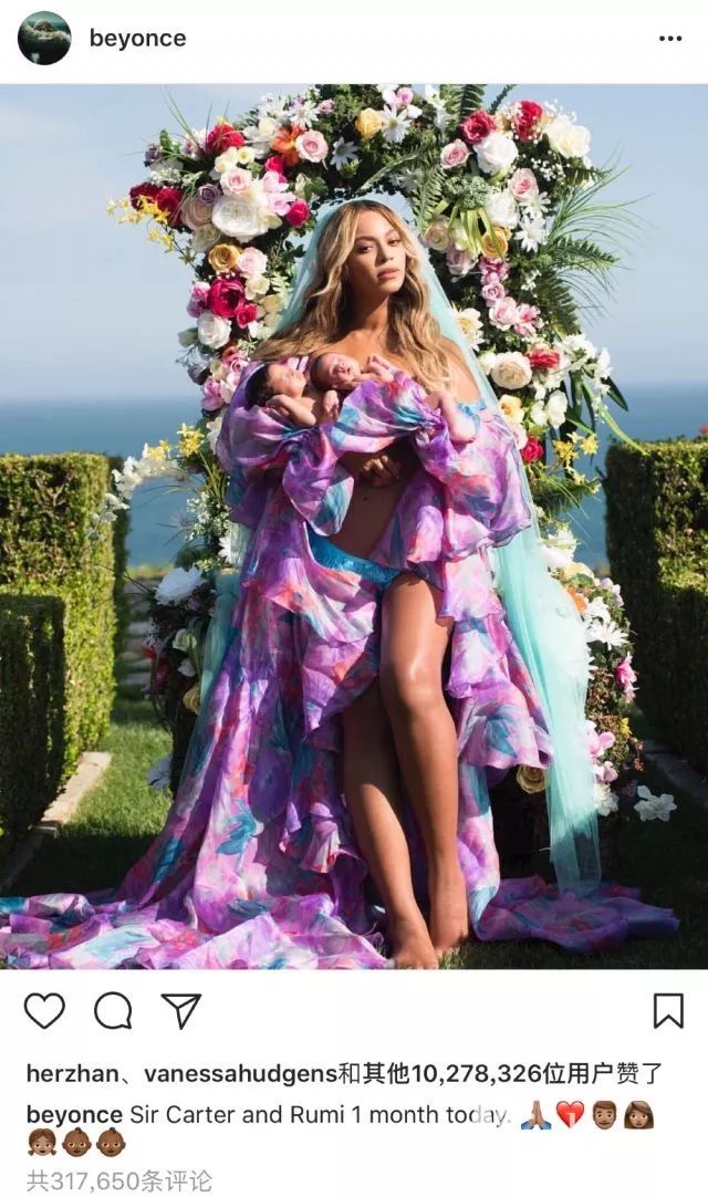 第一名依然是关于小朋友的,这张被点赞1119万次的照片来自Beyonce的孕照。