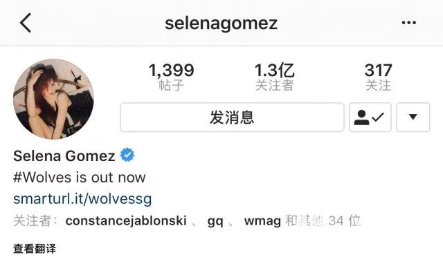 在ins上拥有1.3亿followers的Selena Gomez,傻脸娜也是ins上粉丝最多的明星,2017年点赞最高的十张照片里,她就占了五张。