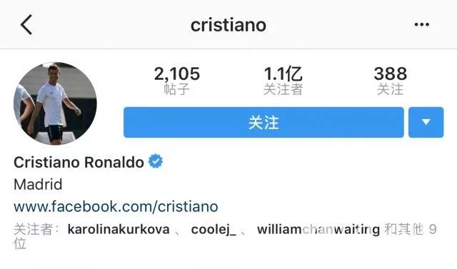 第二位是著名足球运动员C罗,他也是唯一入围的男性。C罗在ins上的关注者也是高得吓人,有1.1亿(霉霉是1亿,而肯豆只有八千万,你们对比下)。