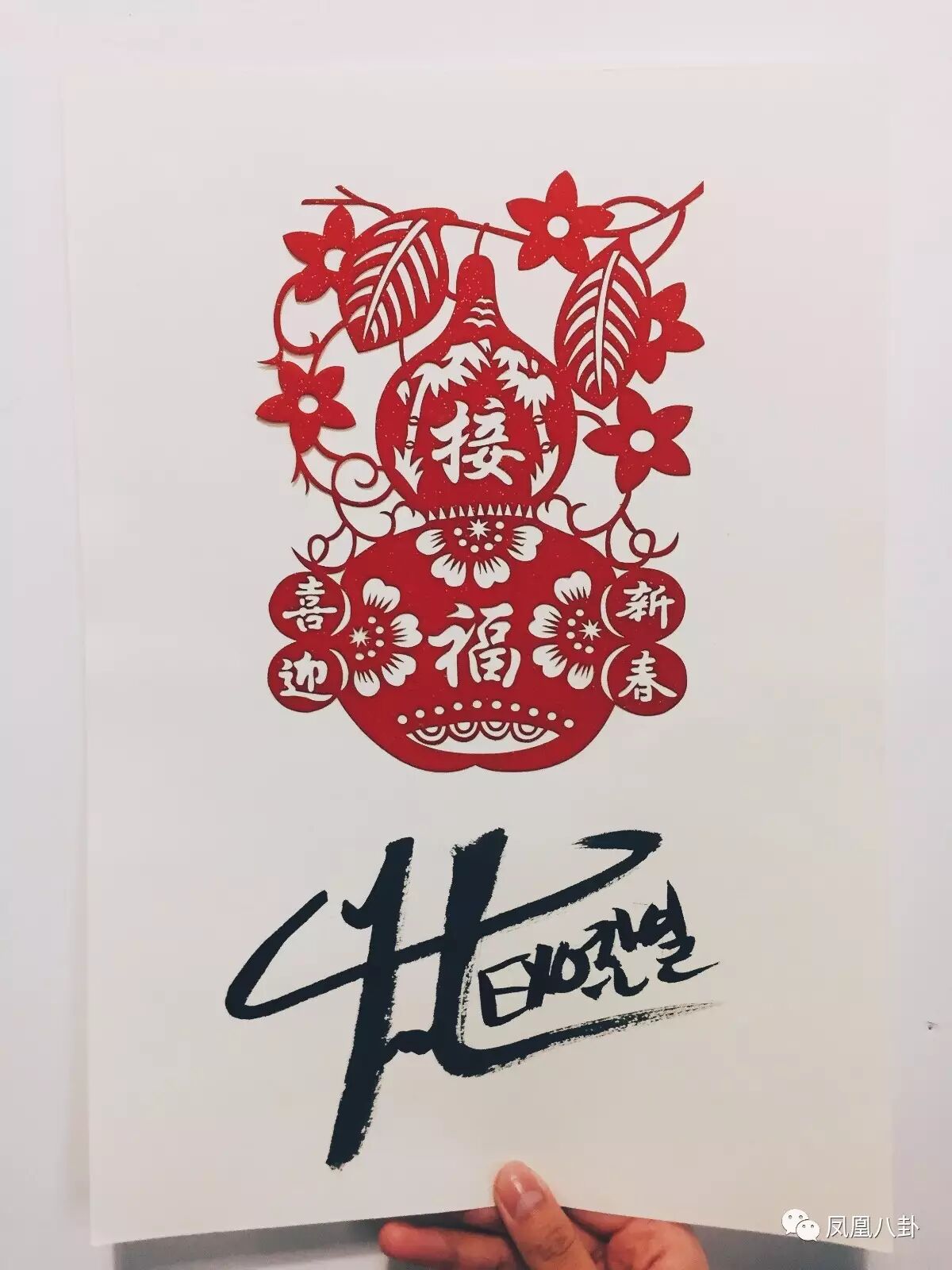 从握笔方式就能猜出签名画风,是EXO队长的威严,“福”字当前落笔,红红火火的过年气氛一下子就衬托出来了!