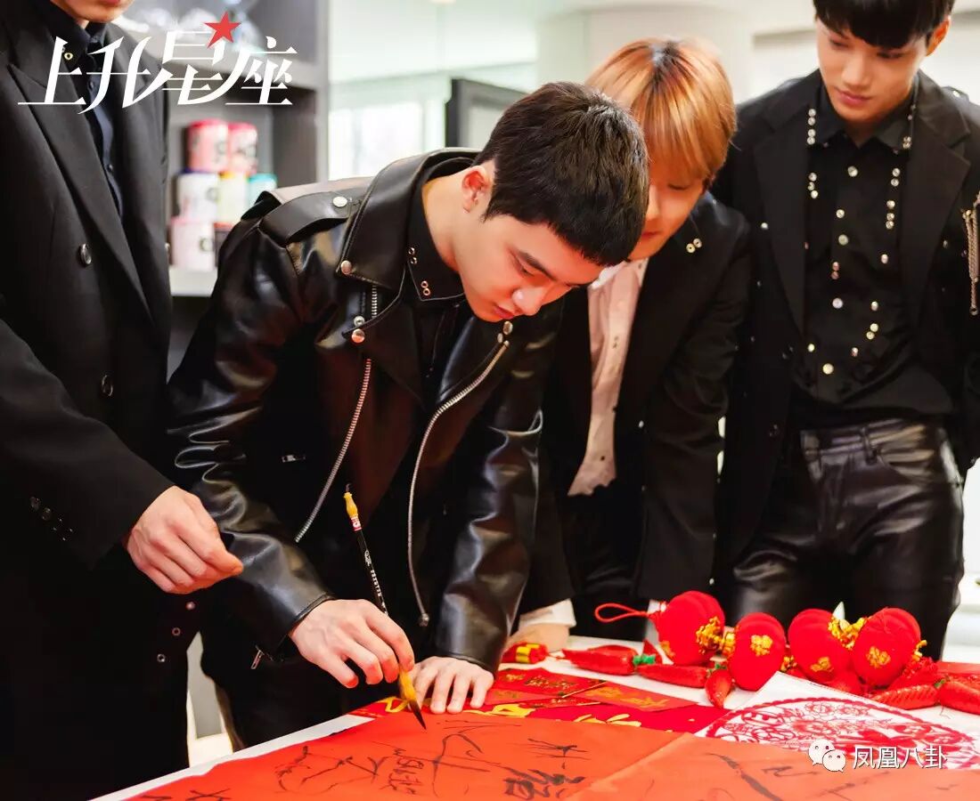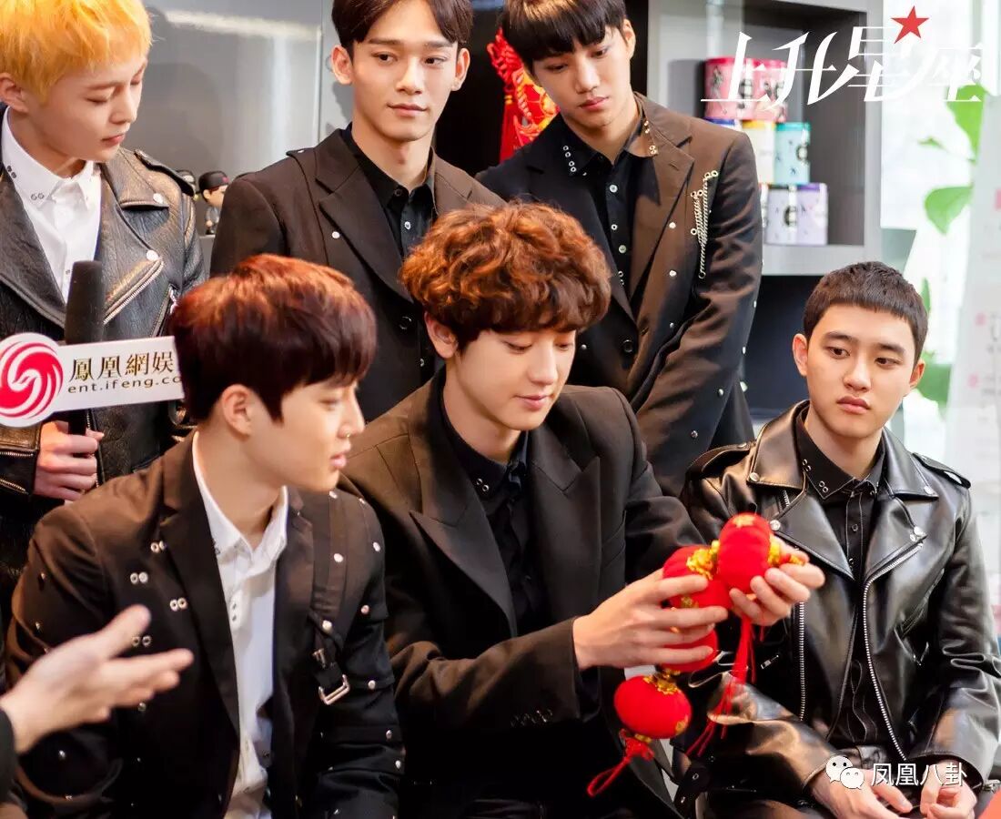 开场就吸引眼球,不愧是EXO!成员们也被身后挂着的春节饰物所吸引,看来都是好奇心强的大男孩。