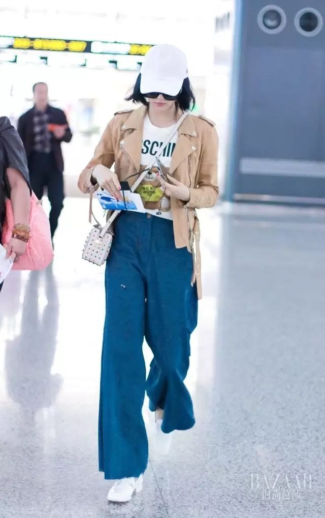 阔腿裤更是拿手绝活,值得一提的穿阔腿裤想要显瘦显高,那么你一定要像诗诗一样选择高腰阔腿裤。除了提升腰线还能拉长腿部线条,使得整套造型纤瘦高挑。