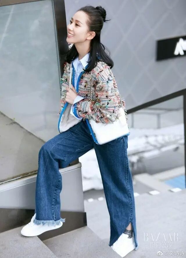 其中,牛仔裤是她最热衷的日常单品,没有之一。她喜欢把两种不同风格的单品混搭在一起,用他们塑造出截然不同的诗诗style~